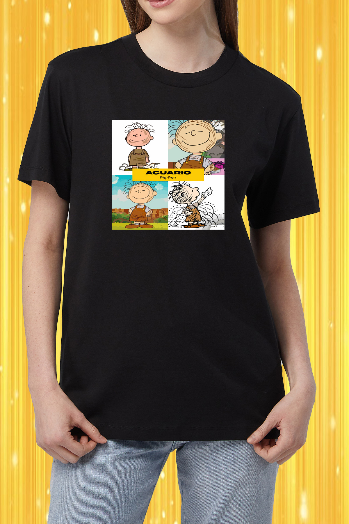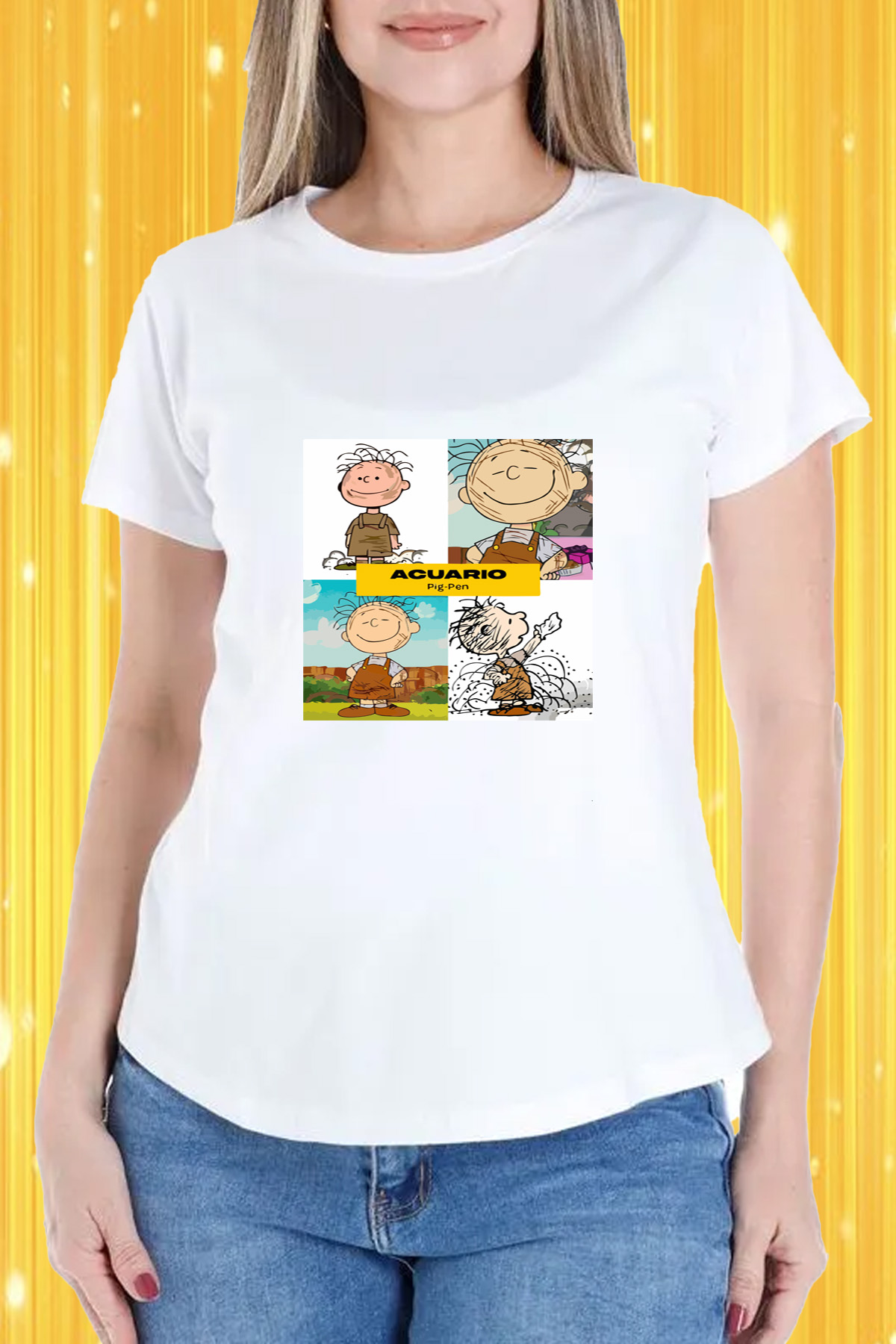 Luce un estilo único con nuestra playera de dama cuello redondo Acuario Pig Pen. Un diseño original y divertido perfecto para expresar tu personalidad y pasión por la astrología. Fabricada con materiales de alta calidad para brindarte comodidad y durabilidad.