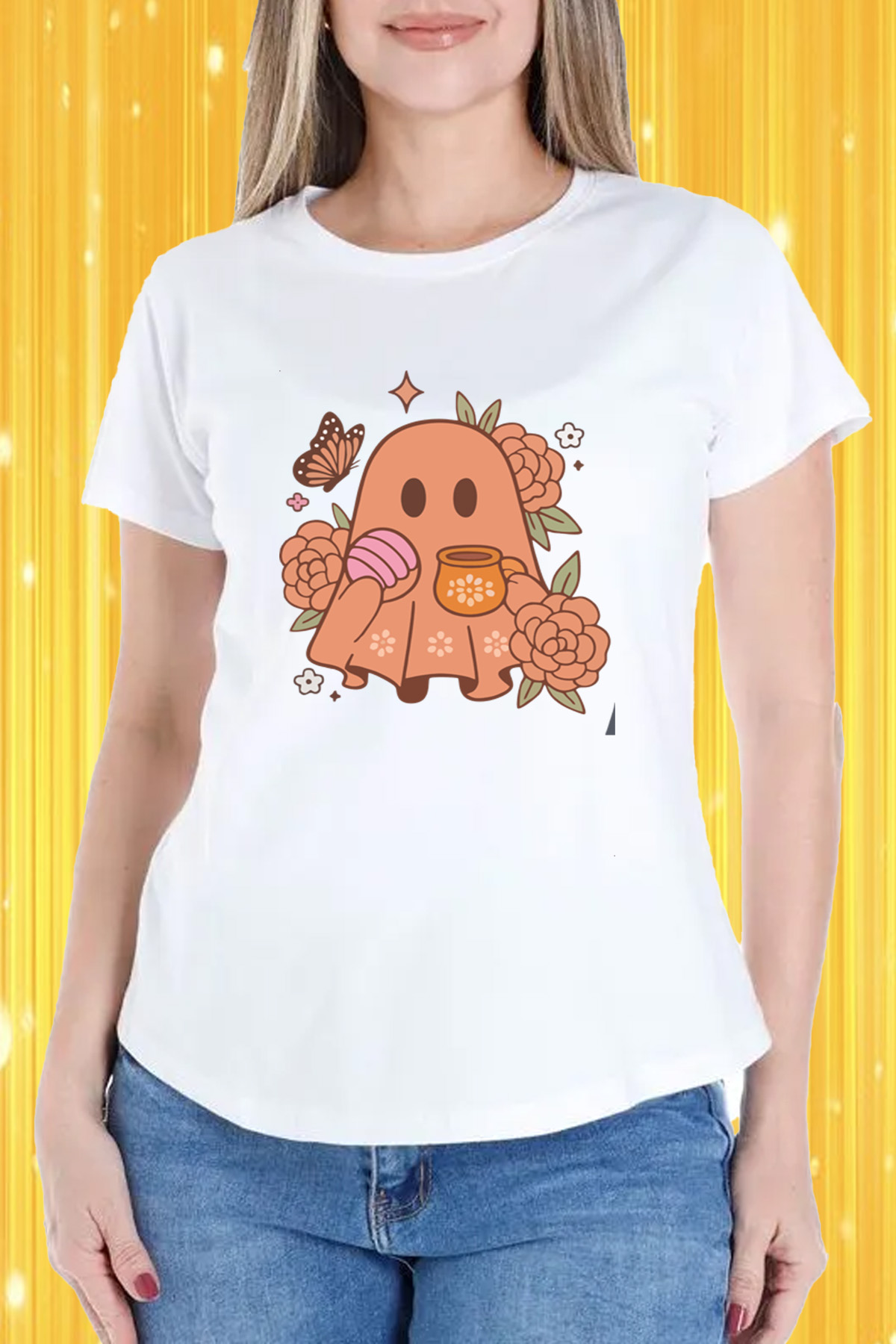 Celebra el Día de Muertos con estilo y originalidad con nuestra playera de dama de cuello redondo. Un diseño único de fantasma, perfecto para lucir en estas fechas especiales. Fabricada con materiales de alta calidad para garantizar comodidad y durabilidad. ¡Consigue la tuya ahora y únete a la tradición con un toque moderno!