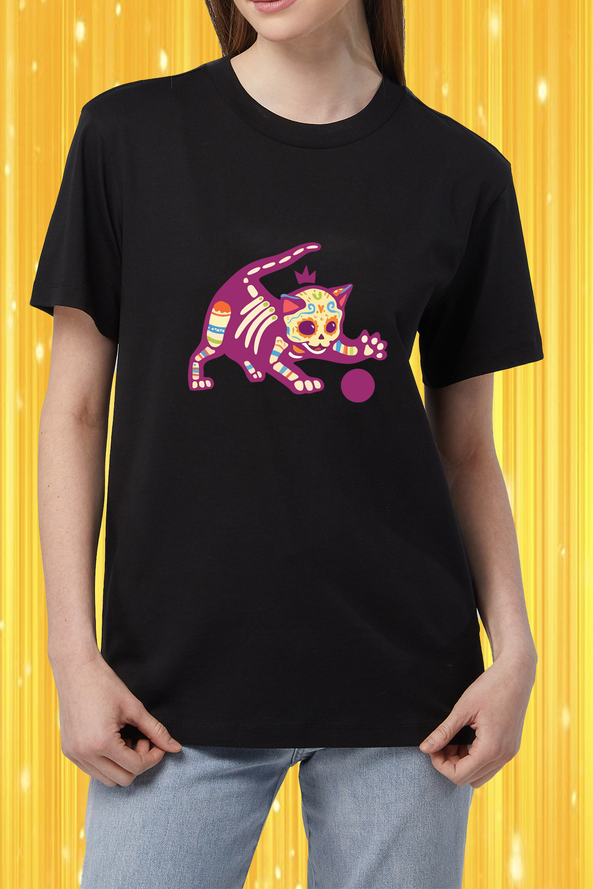 Playera Dama Cuello Redondo Día de Muertos Gato – Diseño Original y Cómodo