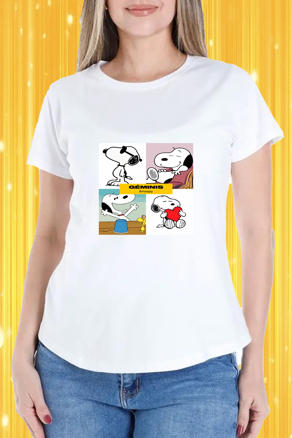 Playera Dama Cuello Redondo Geminis Snoopy – Diseño Exclusivo