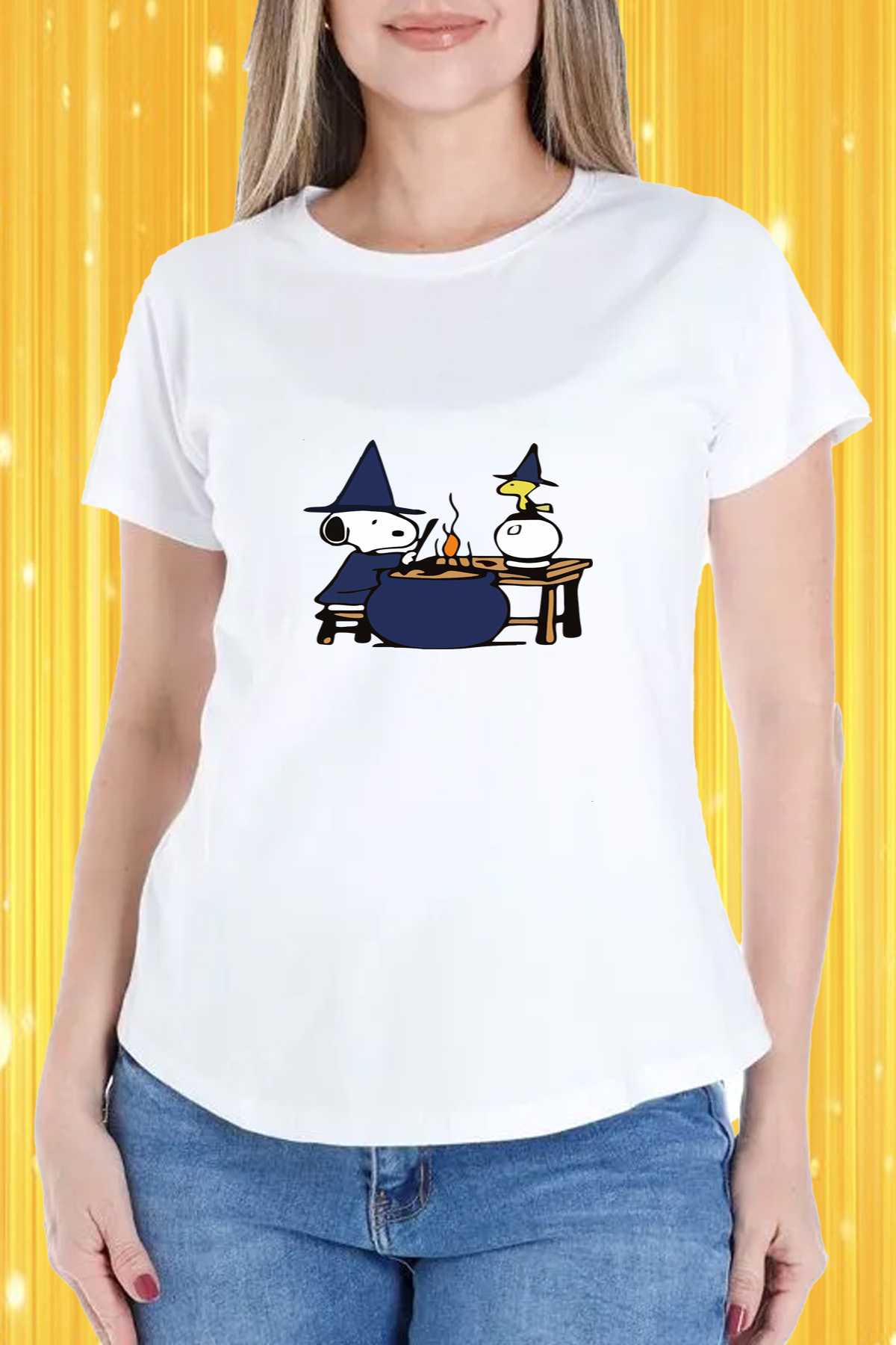 Playera Dama Cuello Redondo Snoopy Brujo Olla – Diseño Exclusivo