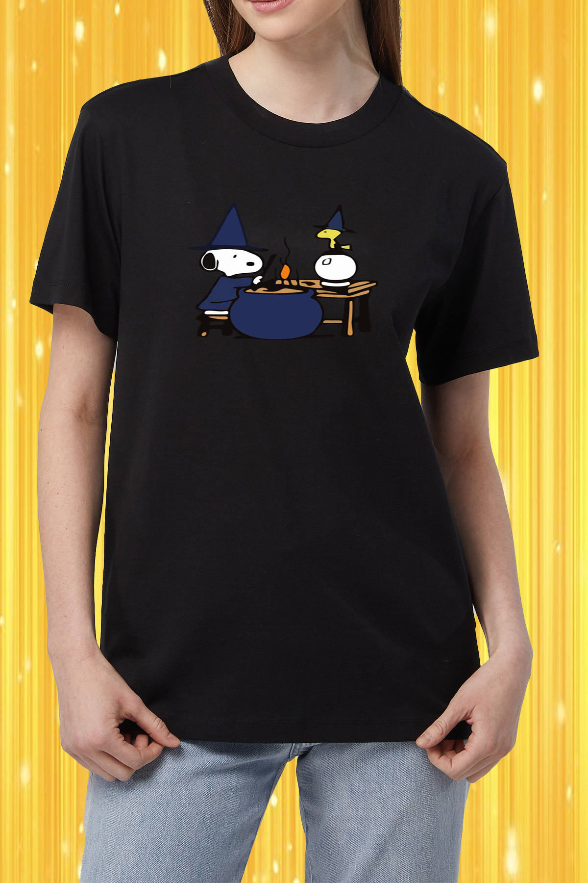 - Diseño Único y Original: Destaca con un estampado exclusivo de Snoopy como brujo, perfecto para expresar tu personalidad.