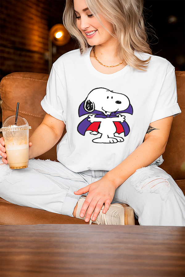 Playera Dama Cuello Redondo Snoopy Vampiro – Diseño Exclusivo para Halloween