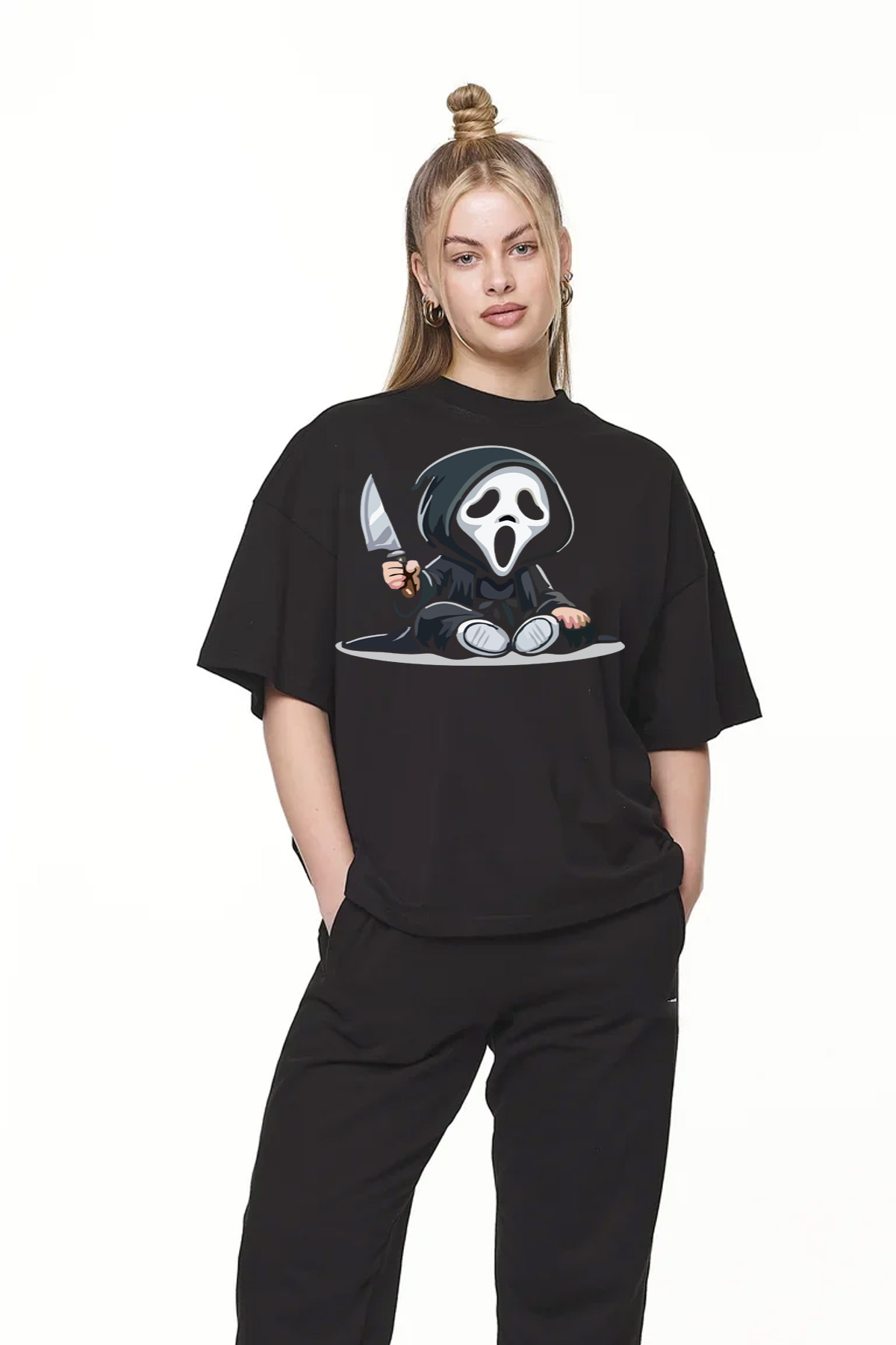 Playera Oversize Halloween Ghostface – Color Negro: El Estilo Terroríficamente Cómodo