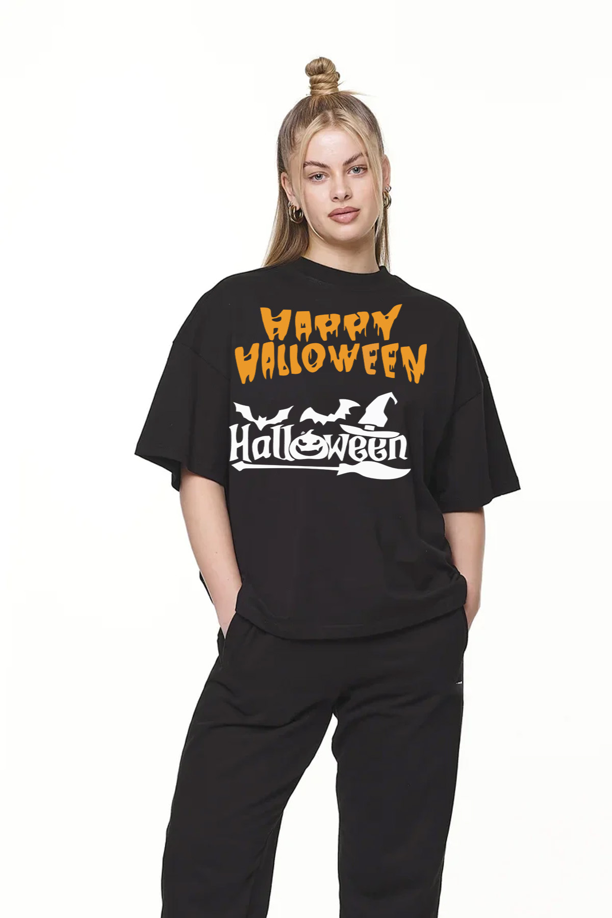 Playera Oversize Happy Halloween – Color Negro: ¡Celebra con Estilo!