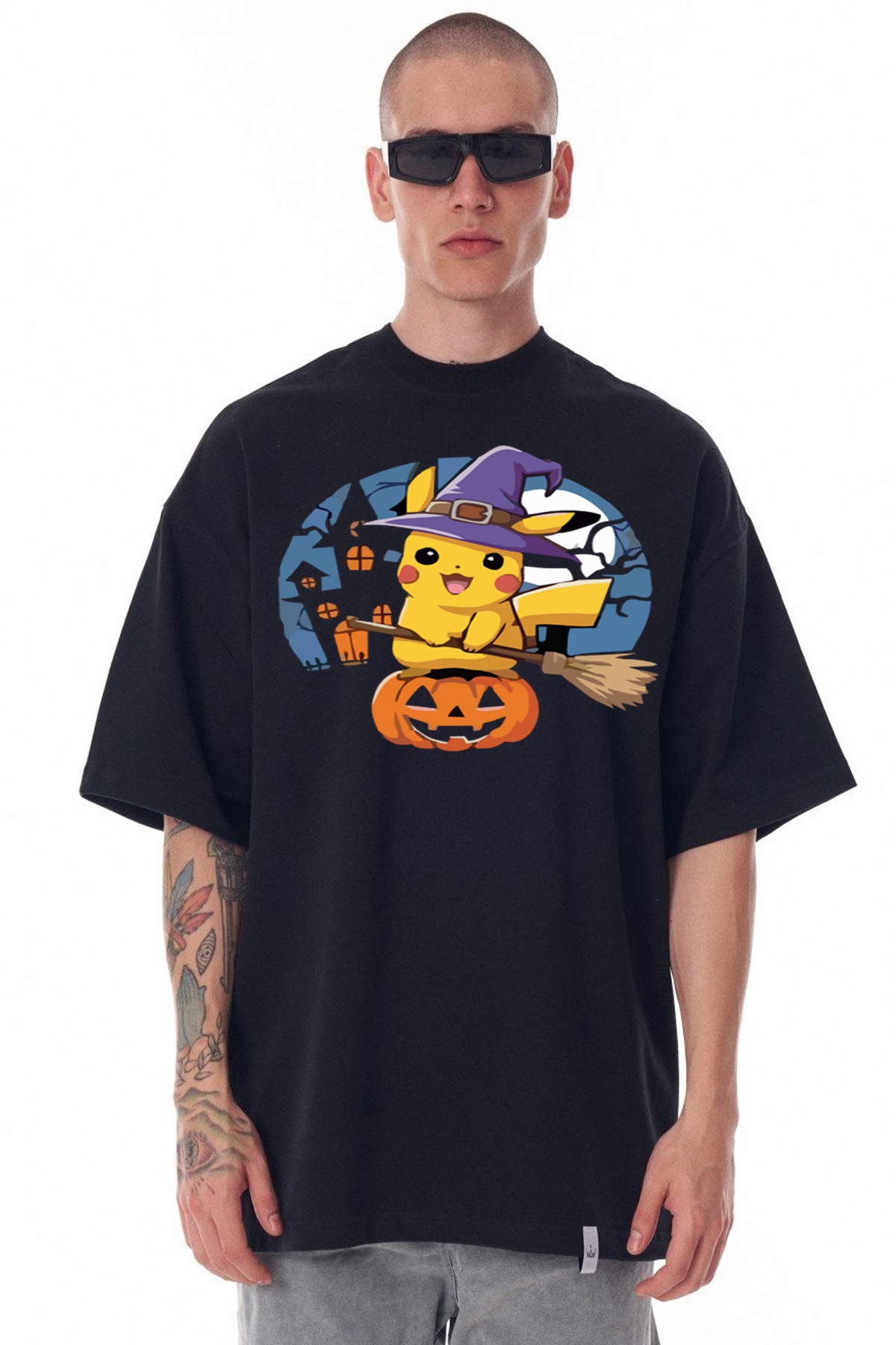 Playera Oversize Pikachu Brujo – Color Negro: ¡Magia y Estilo en tu Ropa!