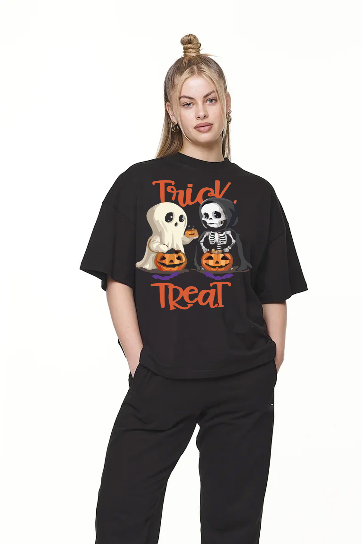 Playera Oversize Trick Treat – Color Negro: Comodidad y Estilo con un Toque Único