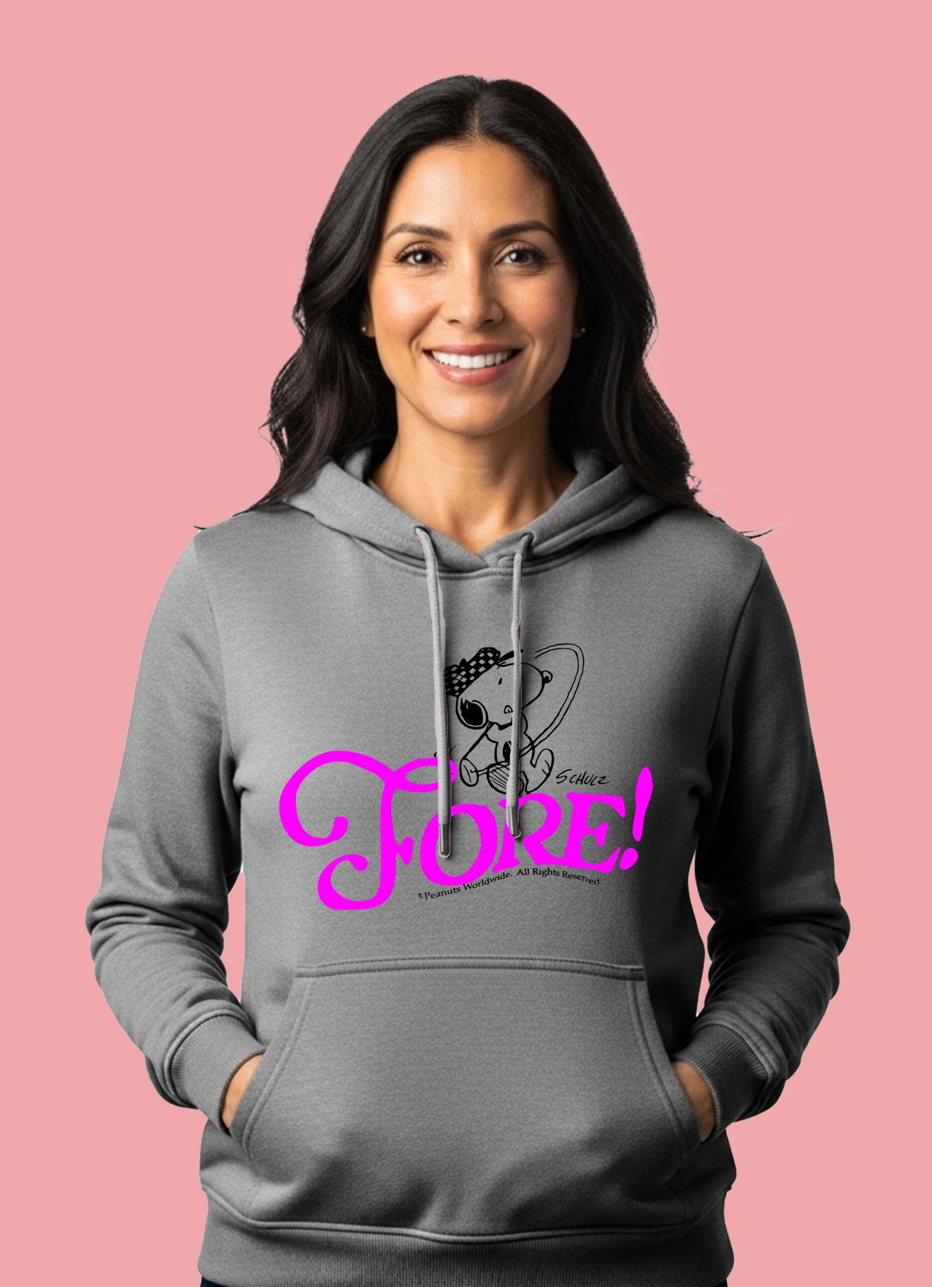 Sudadera gris con diseño de Snoopy jugando golf. Comodidad y un toque divertido para tu día a día. Ideal para cualquier fan del personaje.