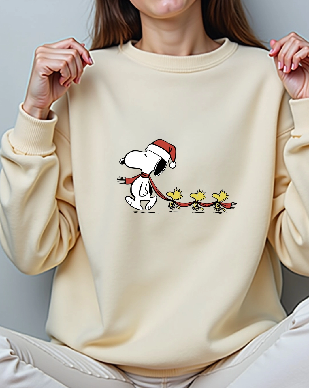 Confeccionada con tela de alta calidad 100% algodón, esta sudadera no solo es suave y cálida, sino también ideal para lucir en reuniones familiares, fiestas con amigos o en tu sesión de fotos navideñas. El diseño de Snoopy, rodeado de luces navideñas, combina ternura y espíritu festivo, haciéndola un verdadero imprescindible de la temporada.