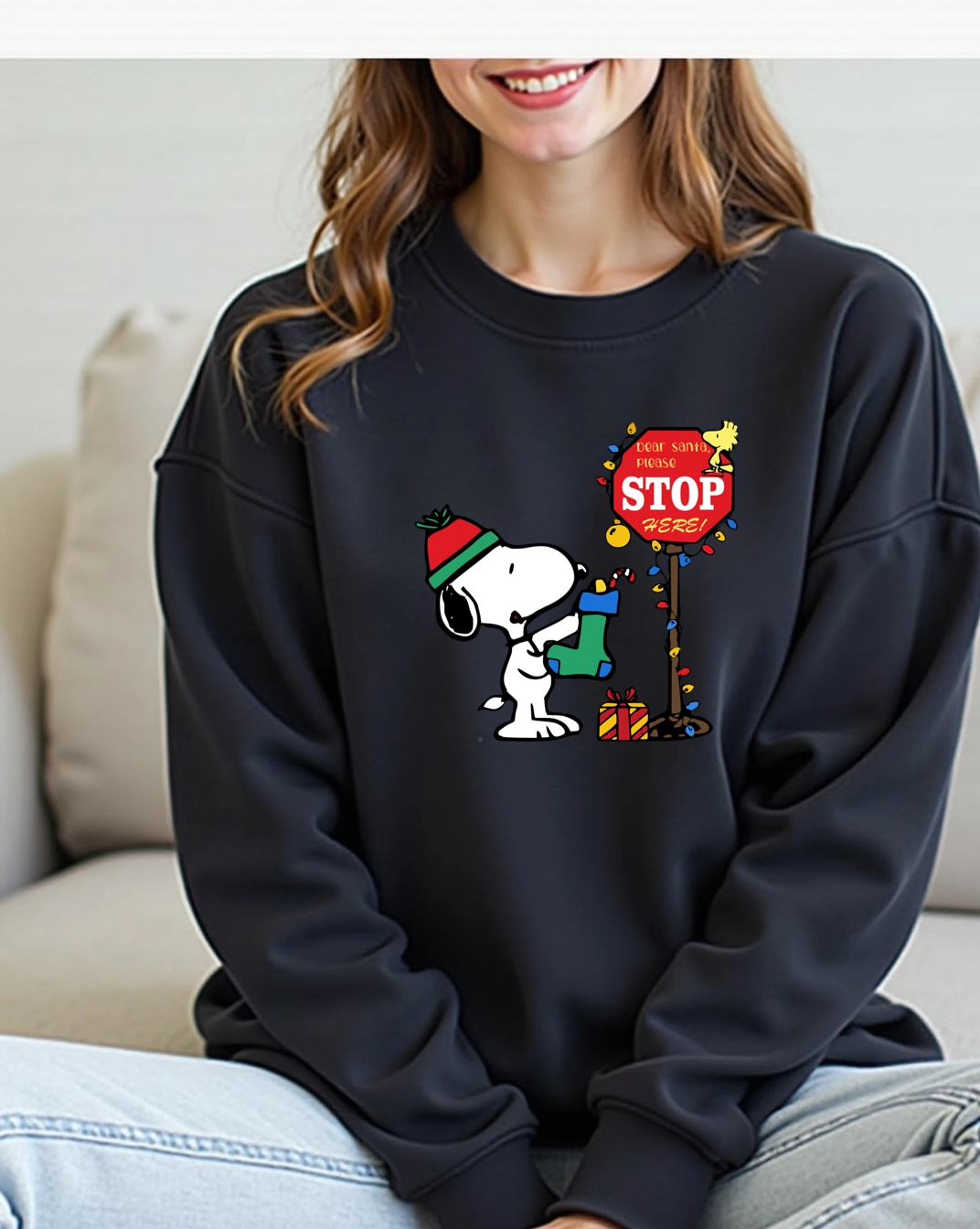 Confeccionada con tela de alta calidad 100% algodón, esta sudadera no solo es suave y cálida, sino también ideal para lucir en reuniones familiares, fiestas con amigos o en tu sesión de fotos navideñas. El diseño de Snoopy, rodeado de luces navideñas, combina ternura y espíritu festivo, haciéndola un verdadero imprescindible de la temporada.